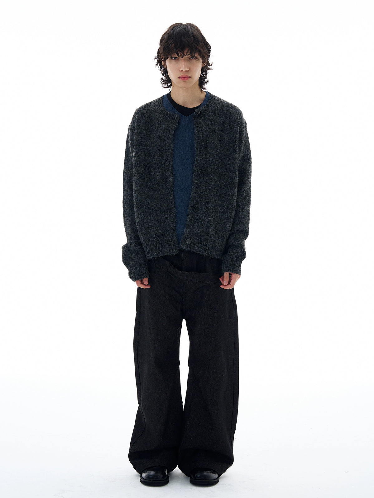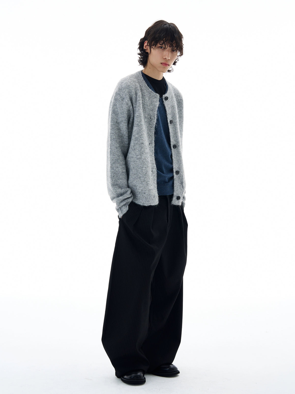 Suéter Cardigã Tricotado de Um Só Botão
