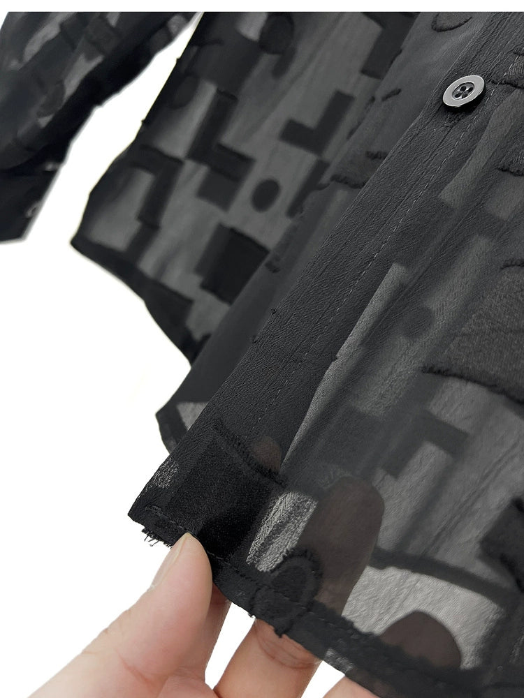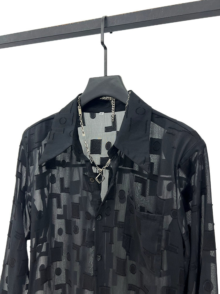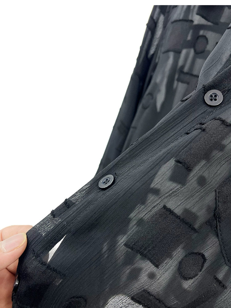 - Material: Tecido de malha leve, e respirável com padrões texturizados geométricos.