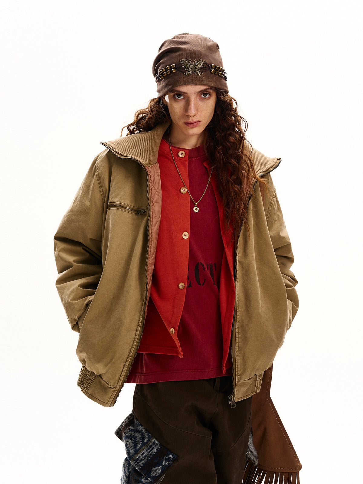 Casaco Retro de Trabalho em Algodão Grosso Estressado