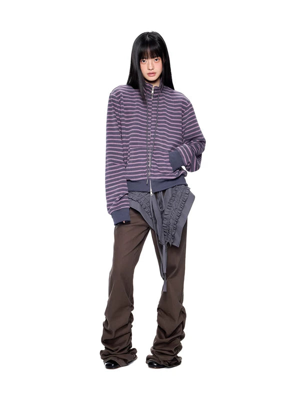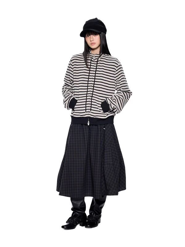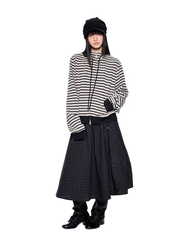 Cardigã de Gola Alta com Fechamento Frontal em Zíper Listrado