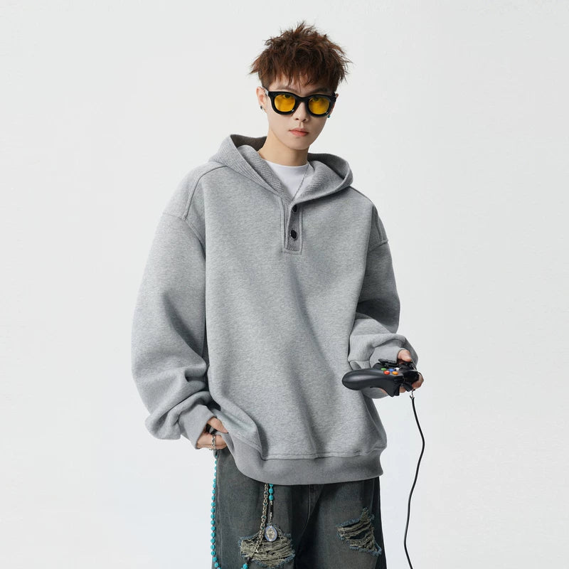 Moletom com Capuz e Botão Oversized