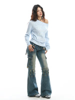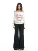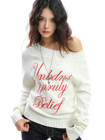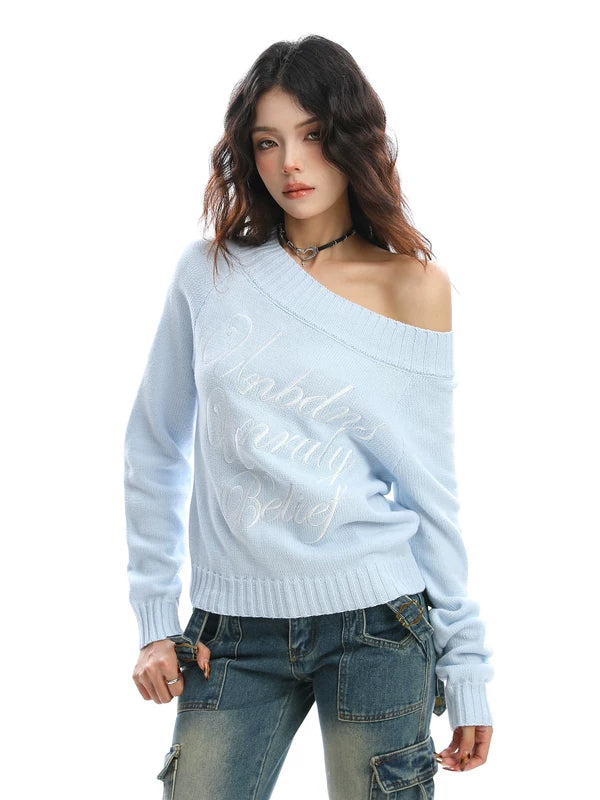 Moleton de Malha com Bordado de Letra e Ombro Descido