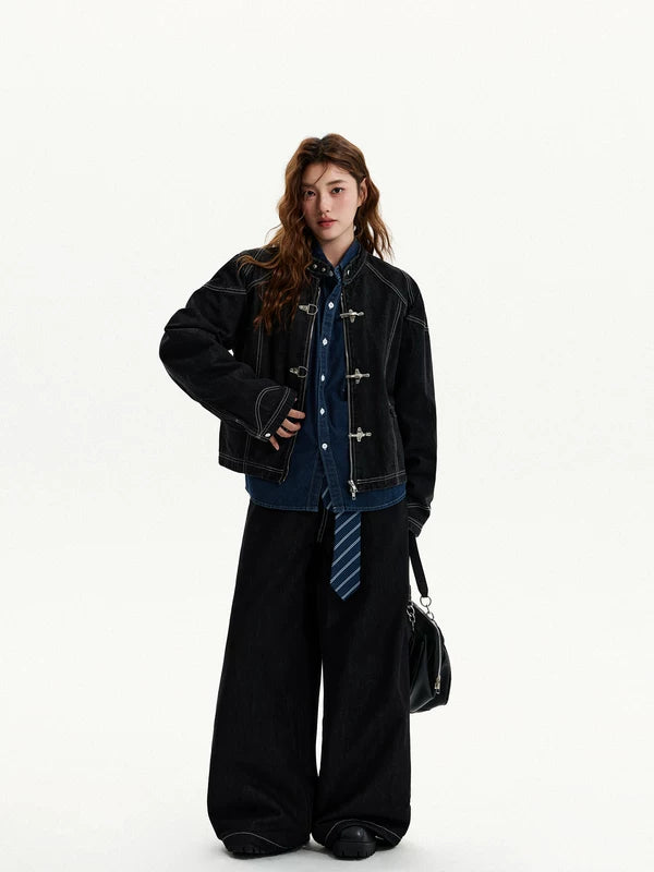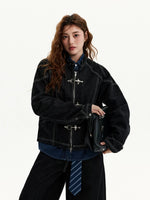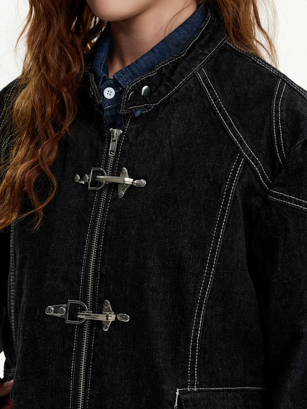 Jaqueta Jeans com Fivela Frontal Retro