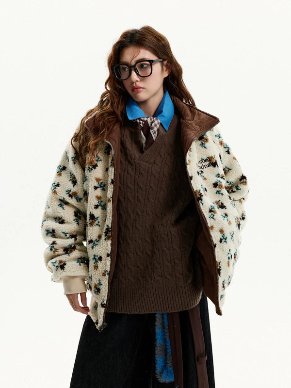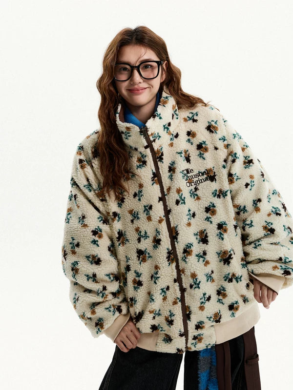 Jaqueta de Zíper de Fleeces Florais Reversível
