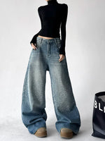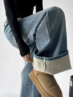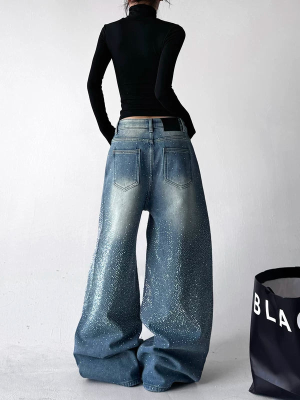 Calças Jeans de Cintura Alta com Pernas Largas de Strass