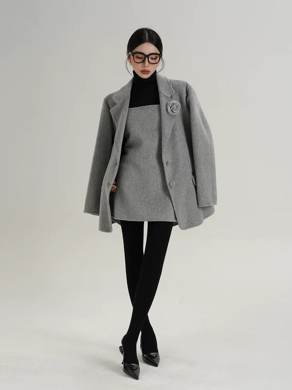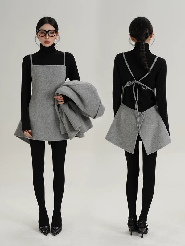 Conjunto de Duas Peças: Casaco de Lã e Vestido