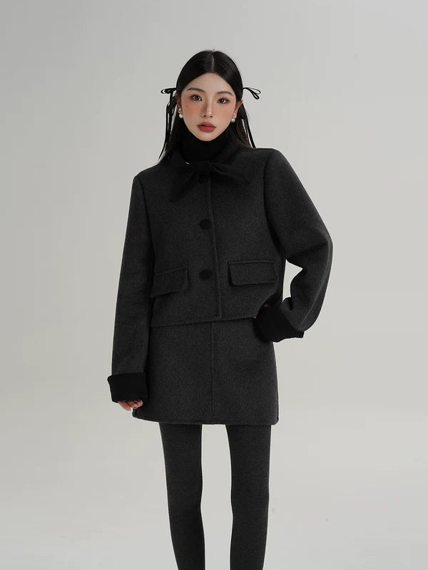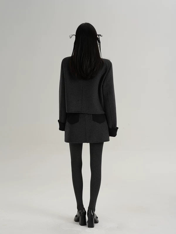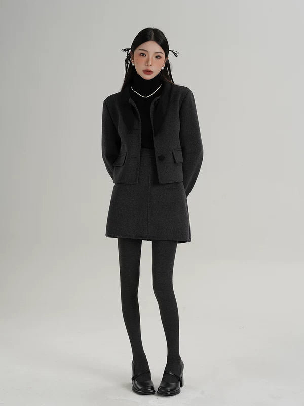 Conjunto de Casaco e Saia de Lã em Dois Peças