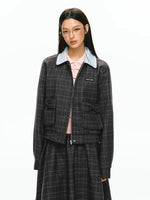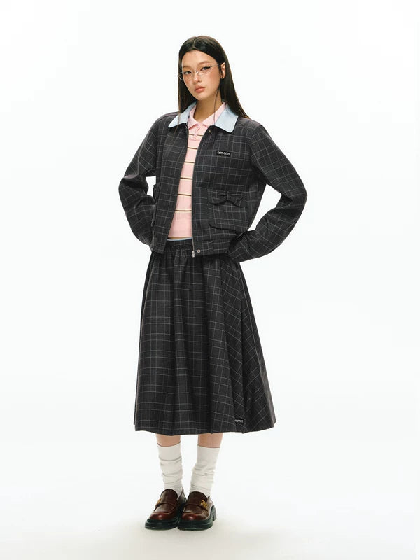 Conjunto de Moda com Jaqueta Xadrez e Saia
