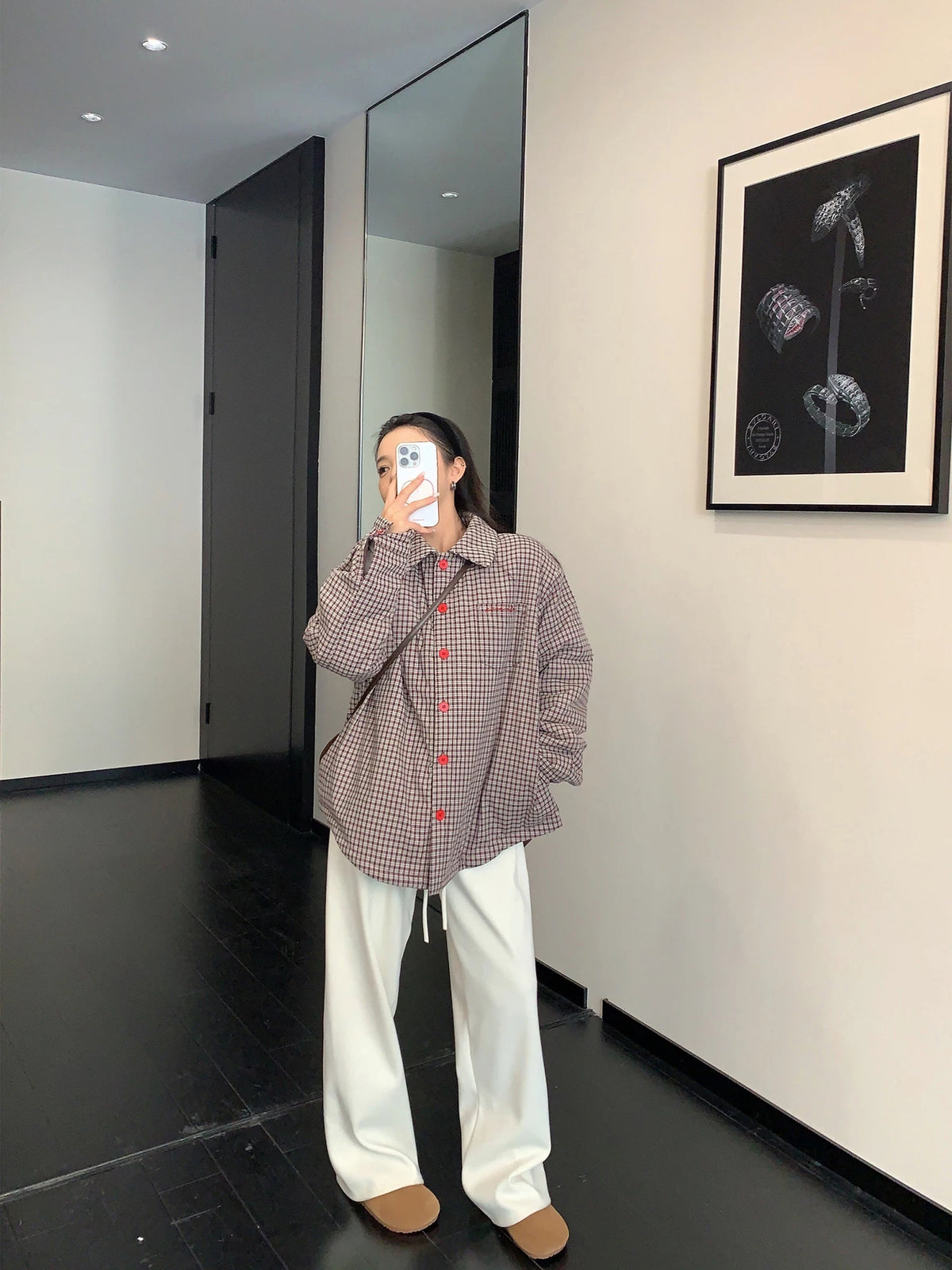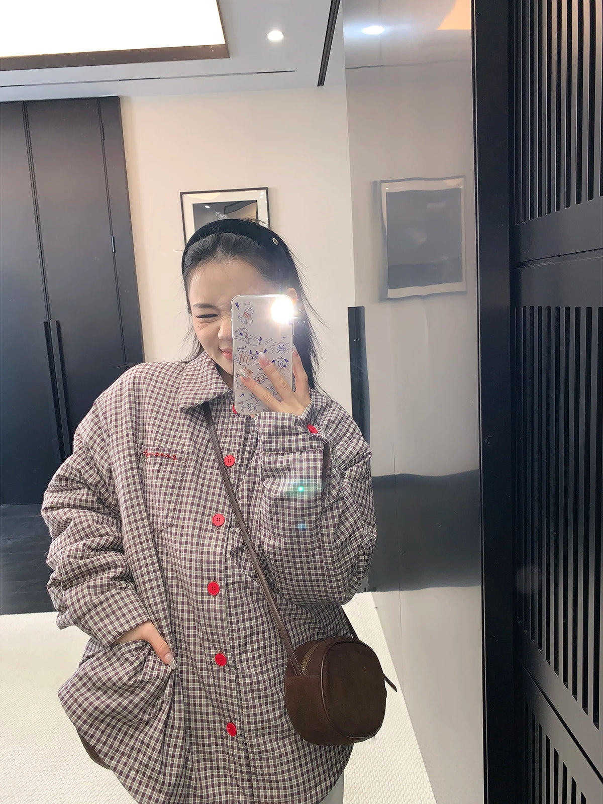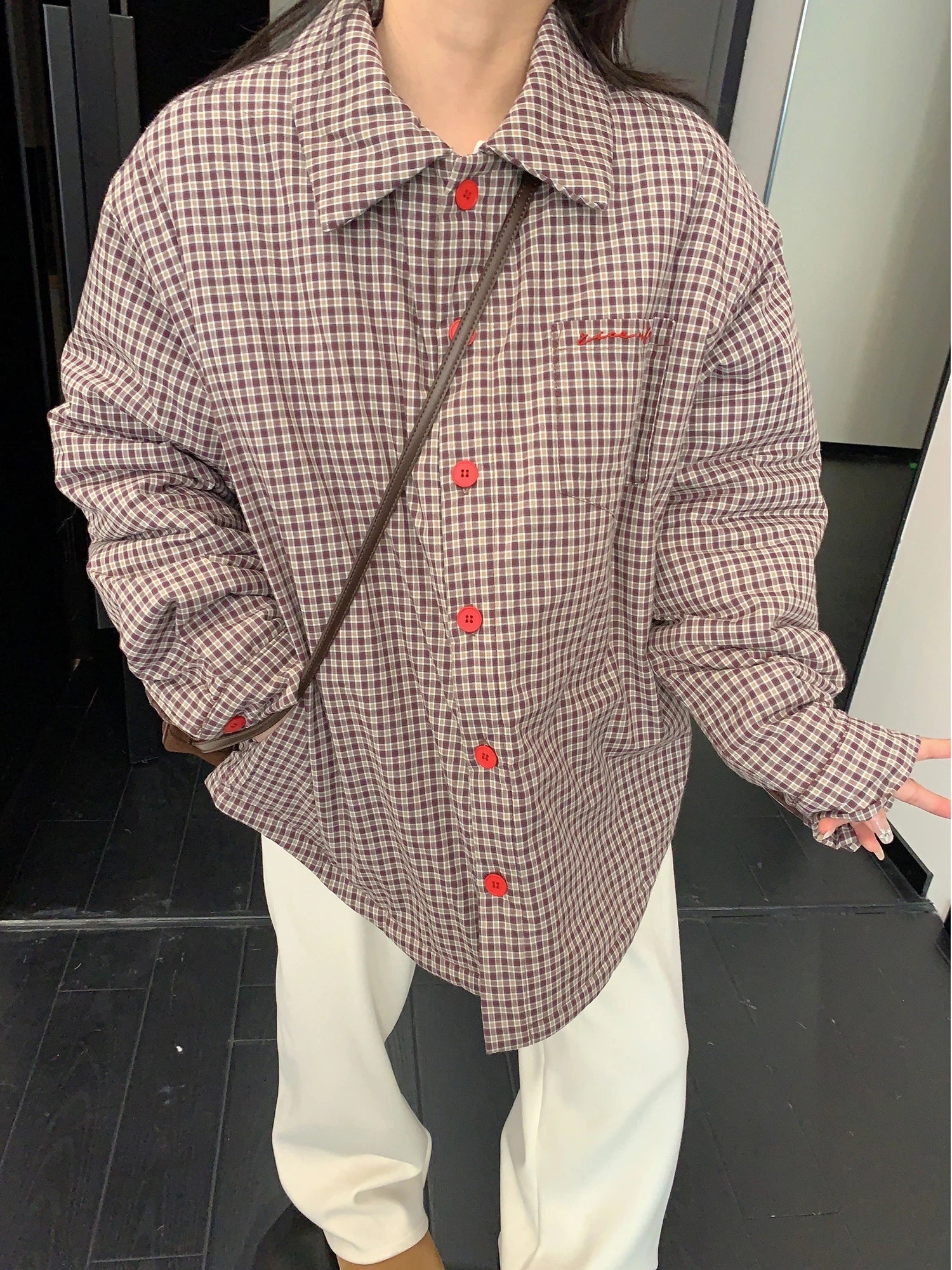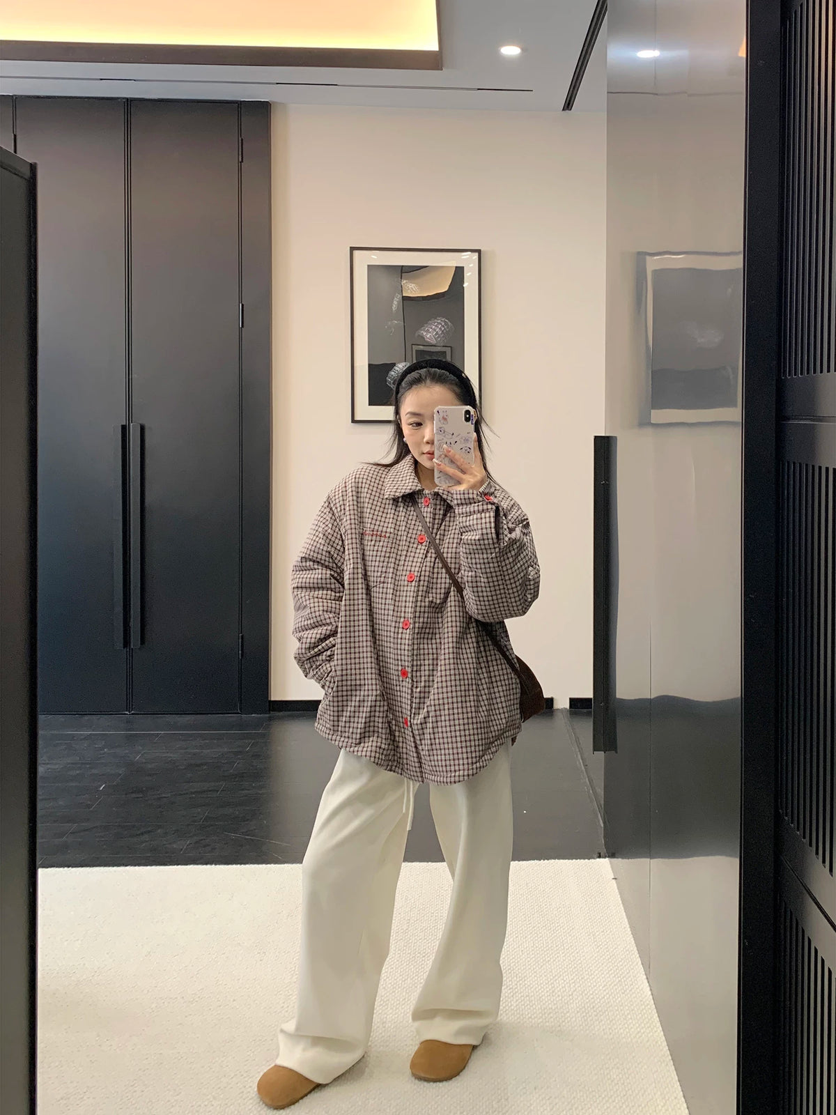 Jaqueta Solta com Botão e Almofadada em Xadrez