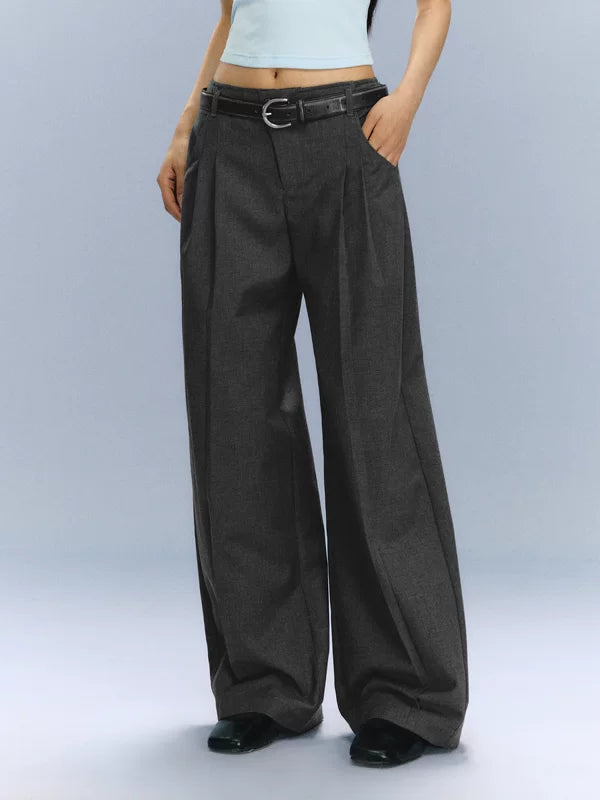 Calças Casuais Plissadas de Perna Larga
