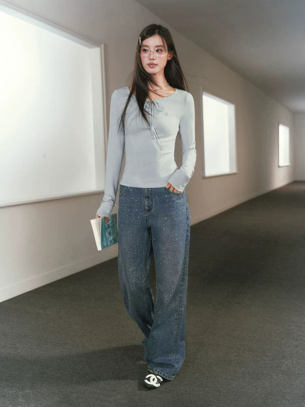 Blusa de Manga Longa com Cintura de Amarrar em Lã Merino com Textura Canelada