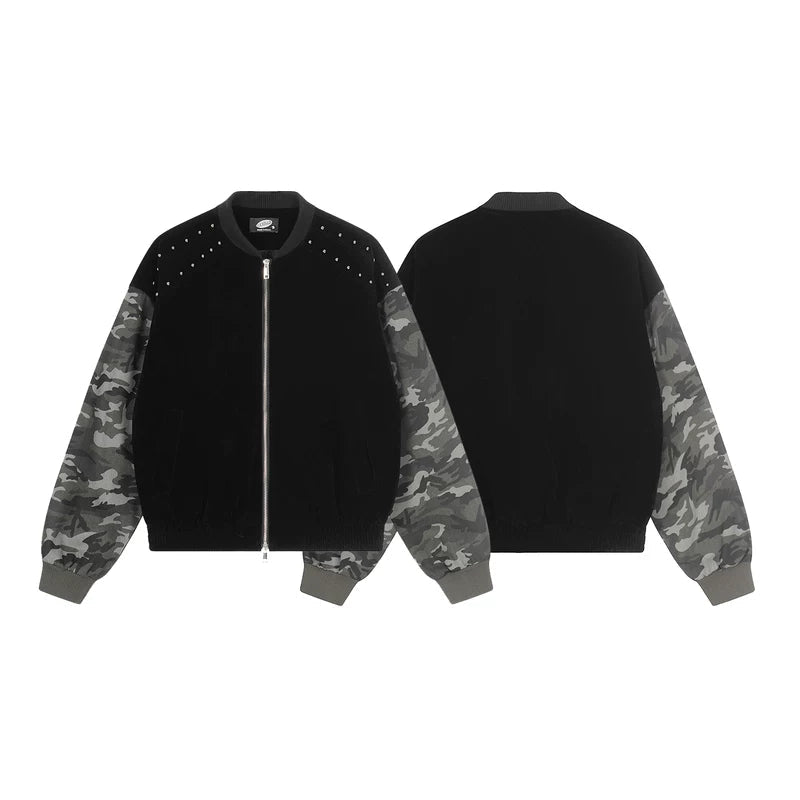 Jaqueta Bomber de Baseball em Camuflagem com Mangas em Patchwork