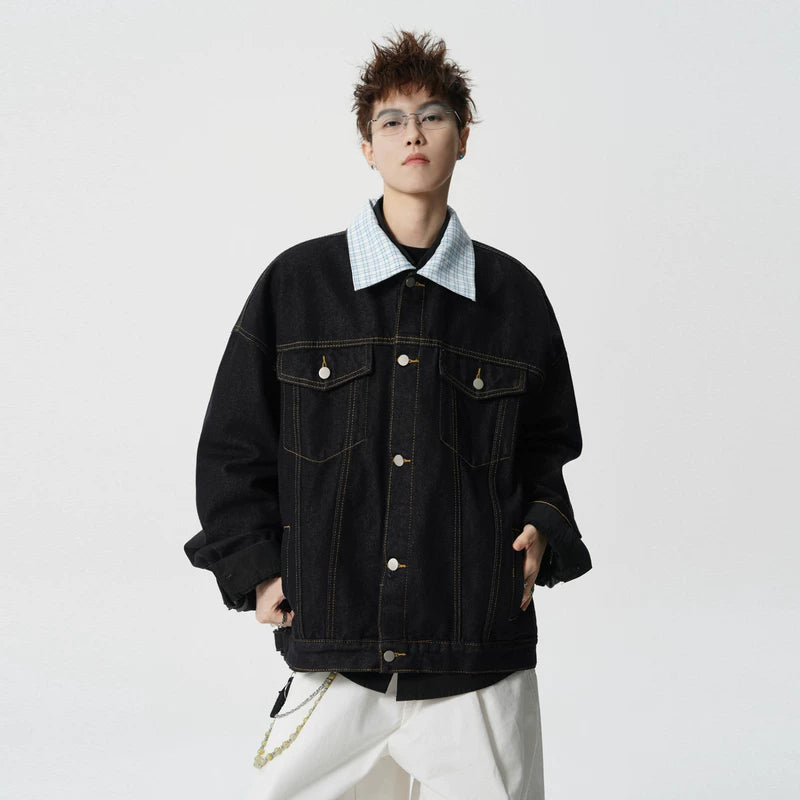 Jaqueta de Denim com Botão e Gola em Cor Block