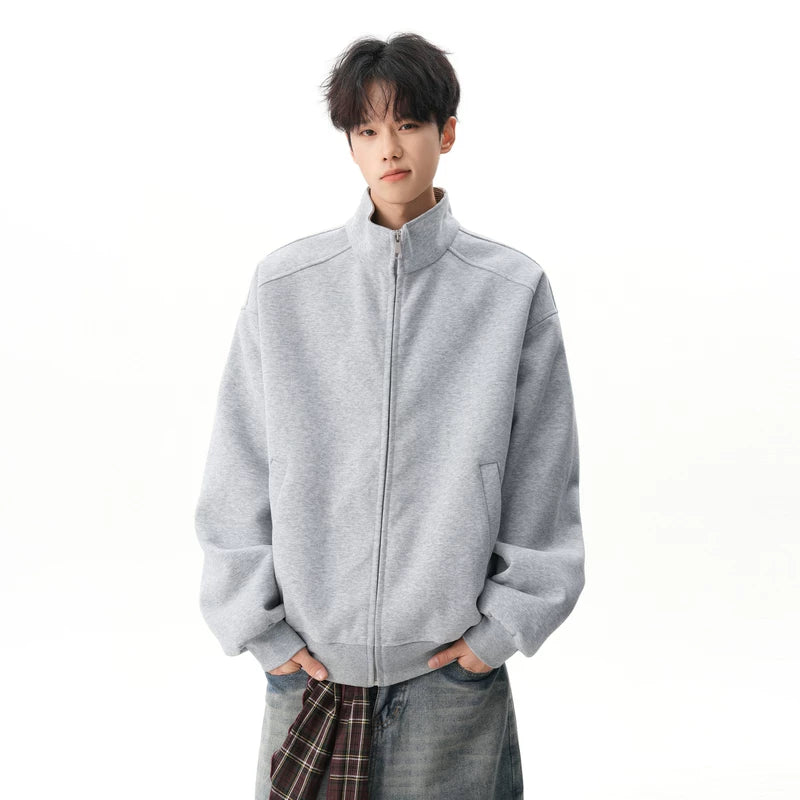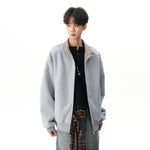 Jaqueta com zíper de gola de pied-de-poule retrô