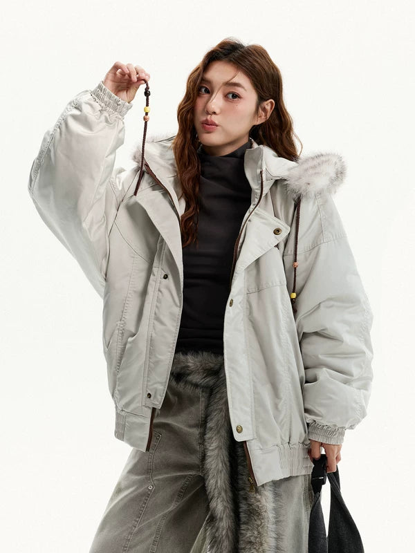 Jaqueta Parka Padded com Gola de Pelo Capuz