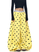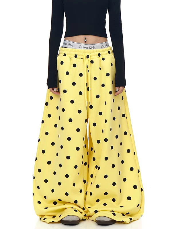 Calças de moletom largas de pelúcia com estampa de bolinhas