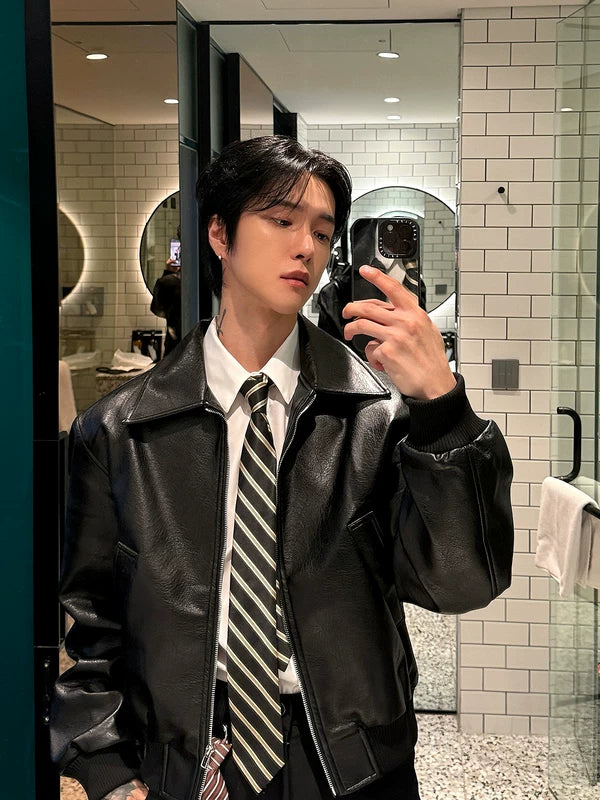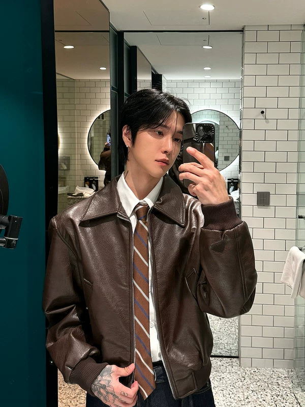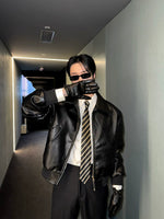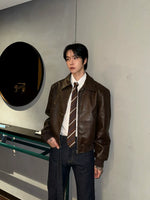 Jaqueta de Couro Curta com Ombreiras Estofadas Retrô