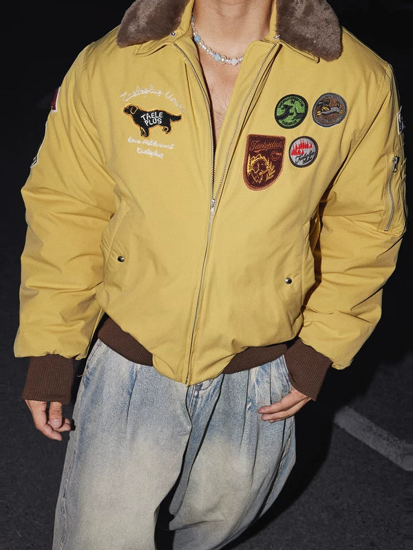 Jaqueta Bomber de Algodão com Insígnia Retro
