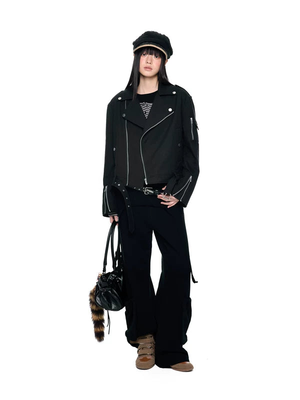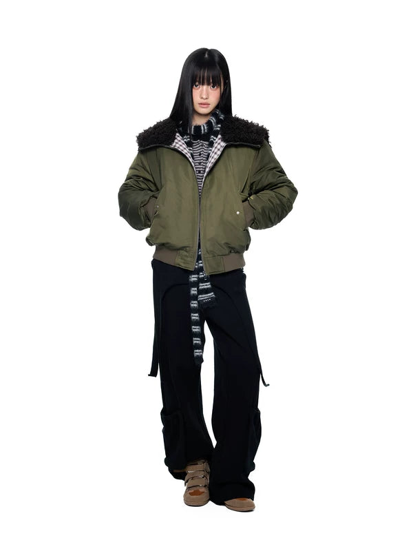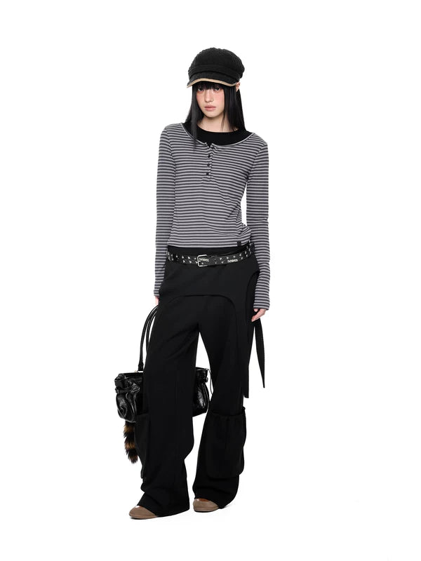 Calças Cargo de Perna Larga com Camadas Falsas