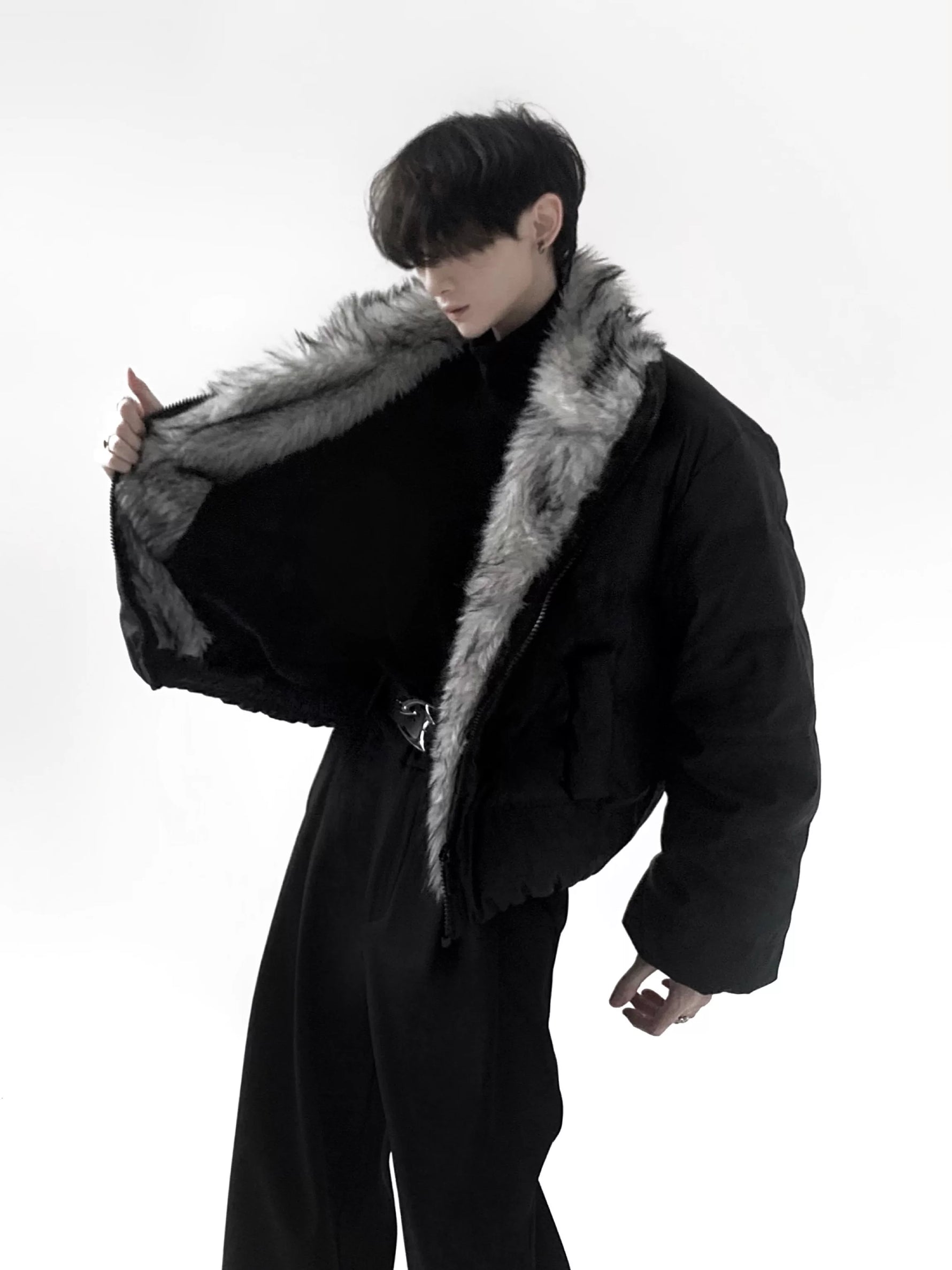 Jaqueta Puffer Down com Gola de Pele Sintética