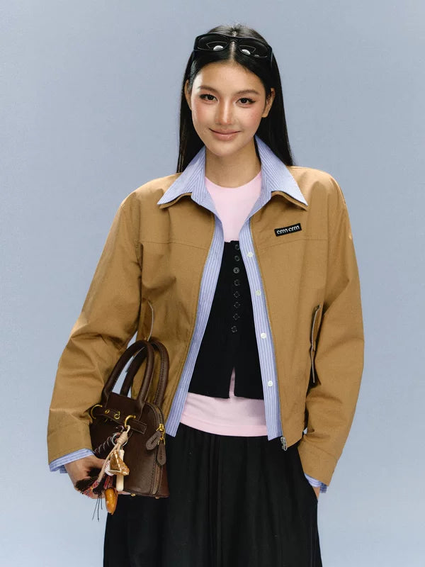 Jaqueta Curta com Zíper Frontal e Gola
