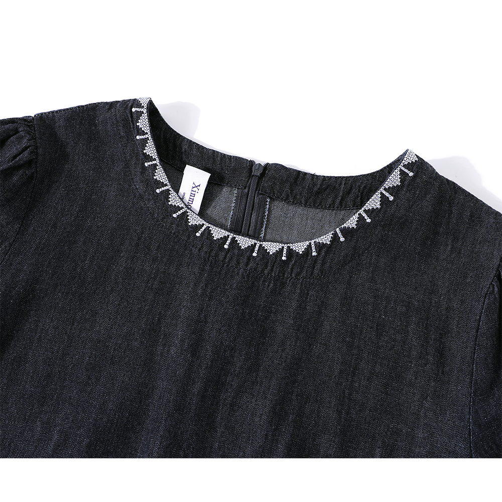Vestido de Verão Solto com Decote Redondo em Jeans