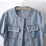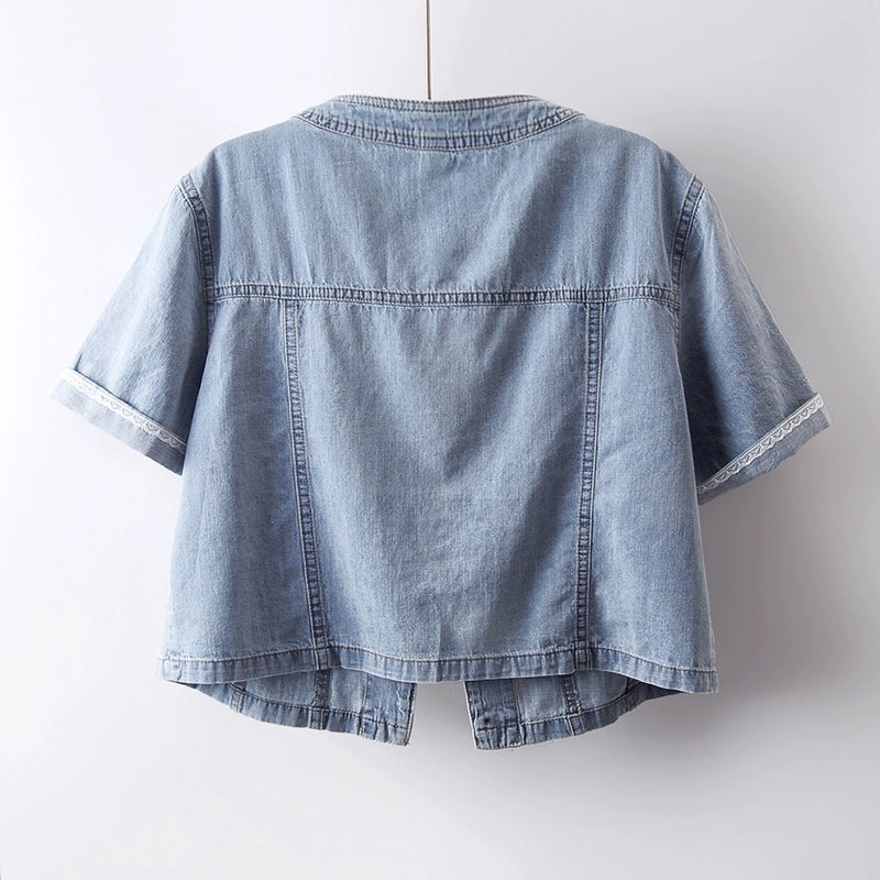 Jaqueta de Jeans de Manga Curta com Gola Redonda