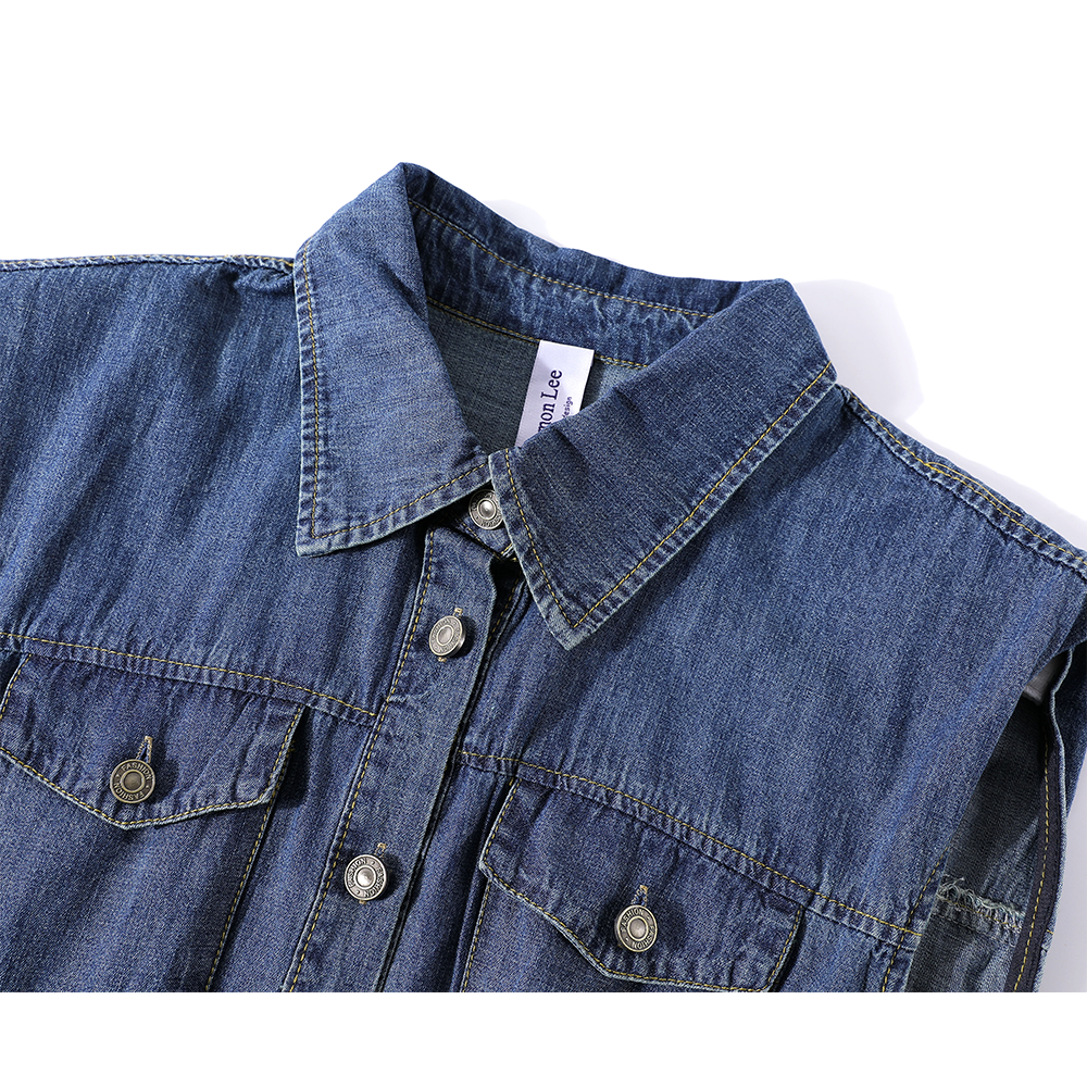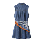 Vestido de Gola Polo de Jeans Sem Mangas com Cinto