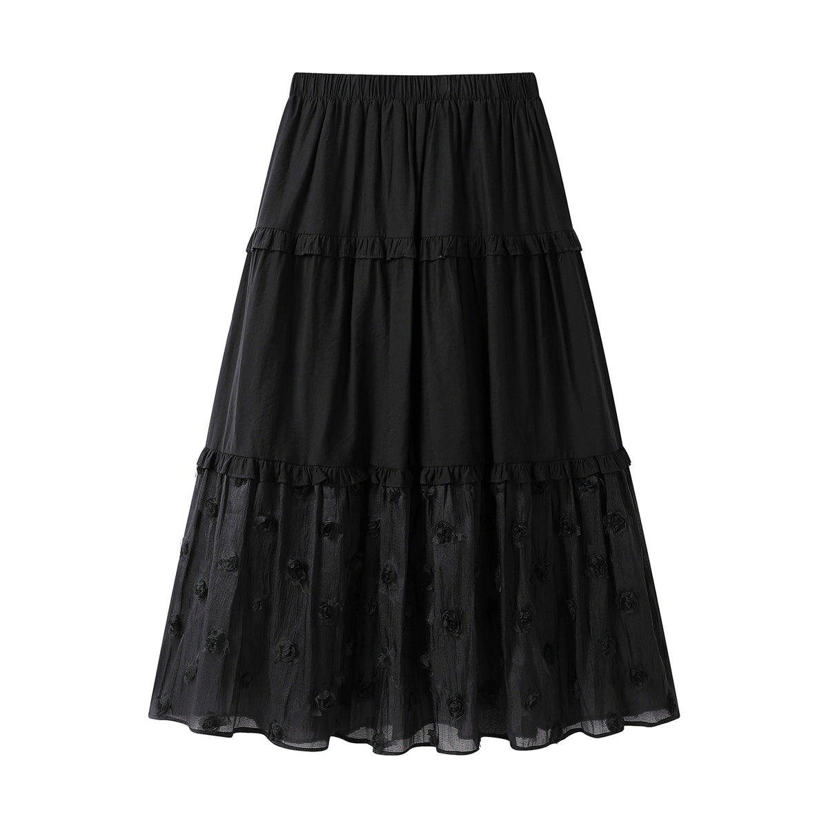 Saia Midi com Aplicações Florais em Camadas