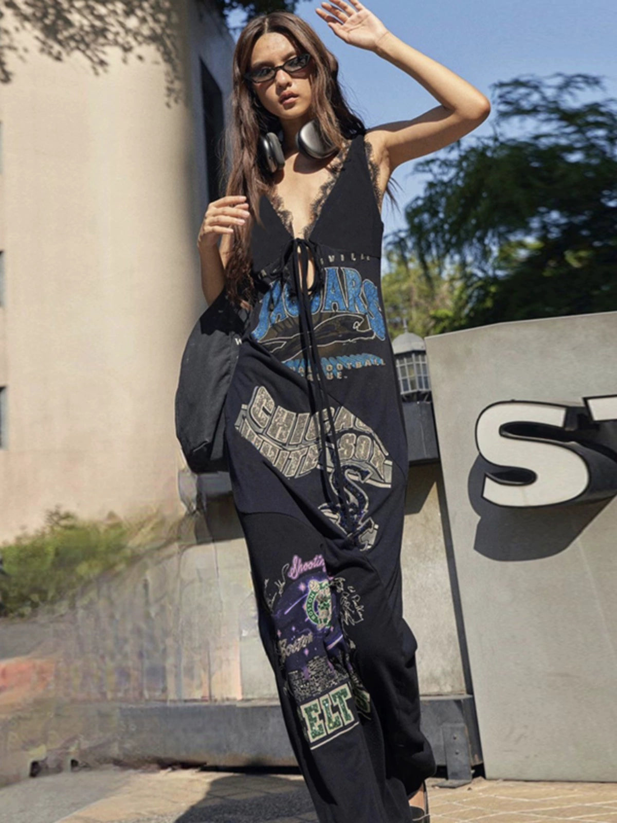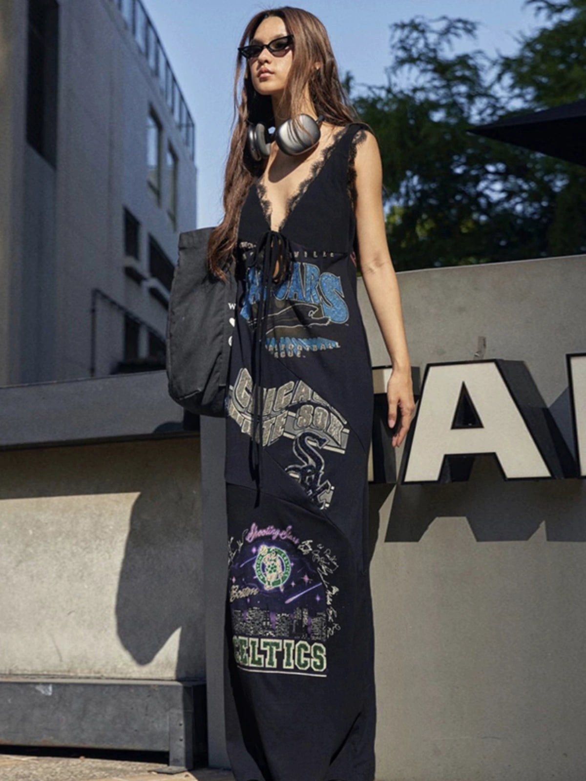 Vestido Sem Mangas com Decote V Profundo e Estampa de Letra