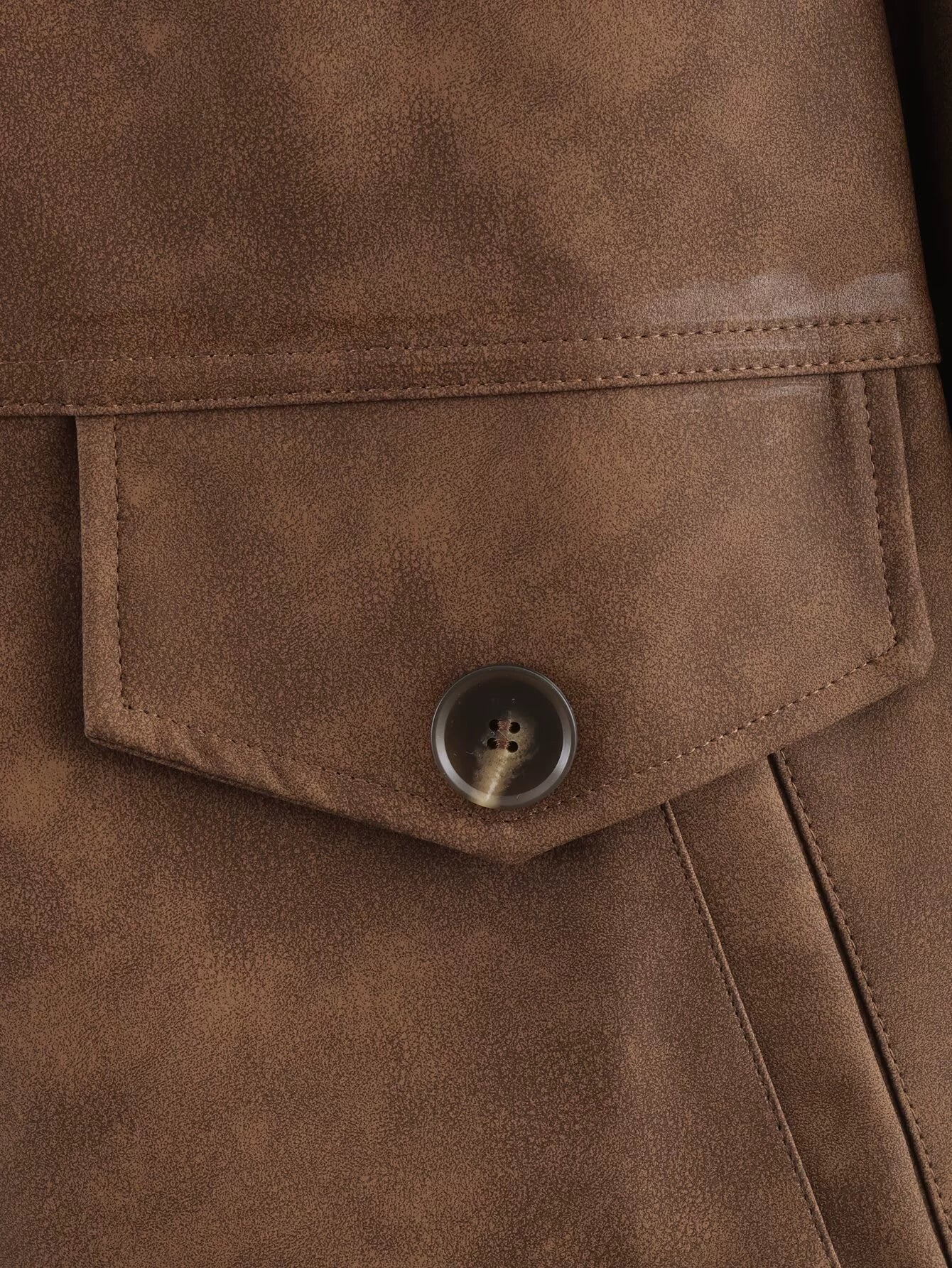 Jaqueta Utilitária de Botão Frontal em Couro PU