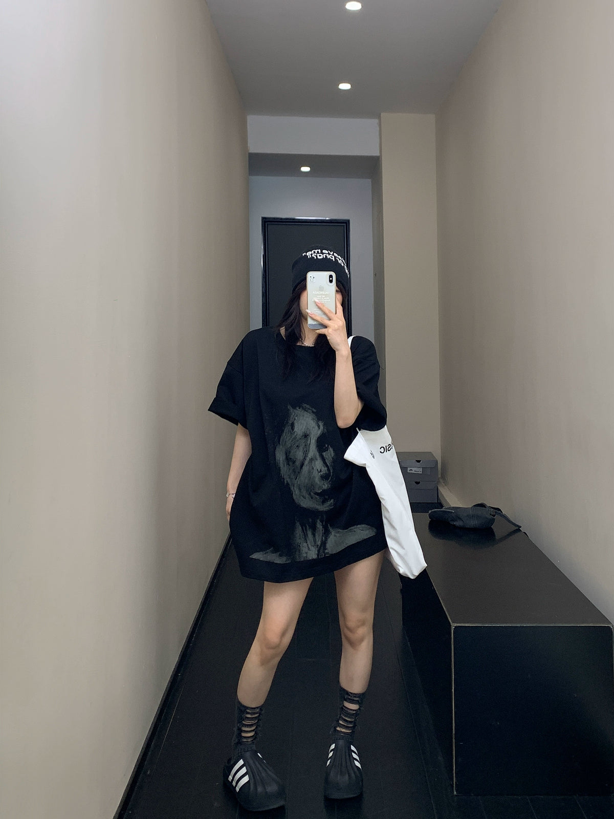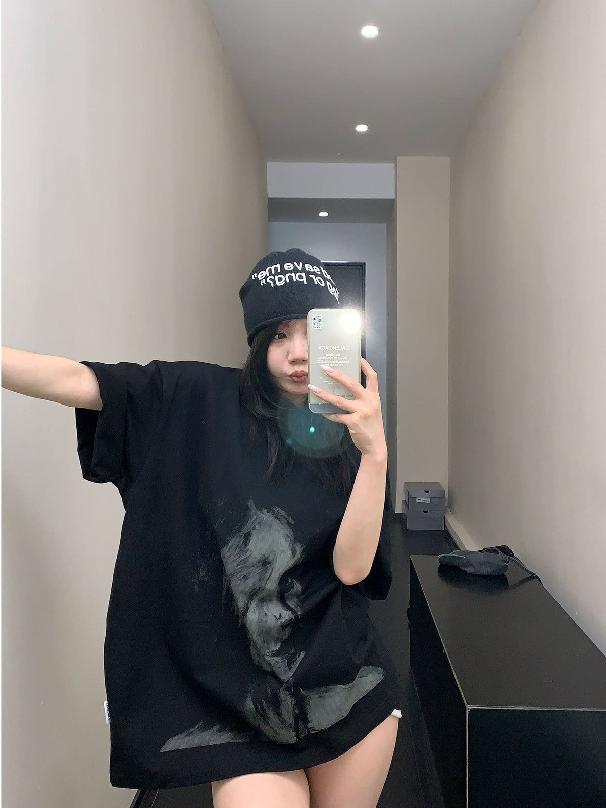 - Artesanato: Processo de impressão em jato de tinta estilo retrato personalizado / Ajuste casual oversized