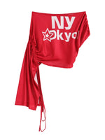 Top Cropped com Amarração Irregular na Cintura e Ombro Só