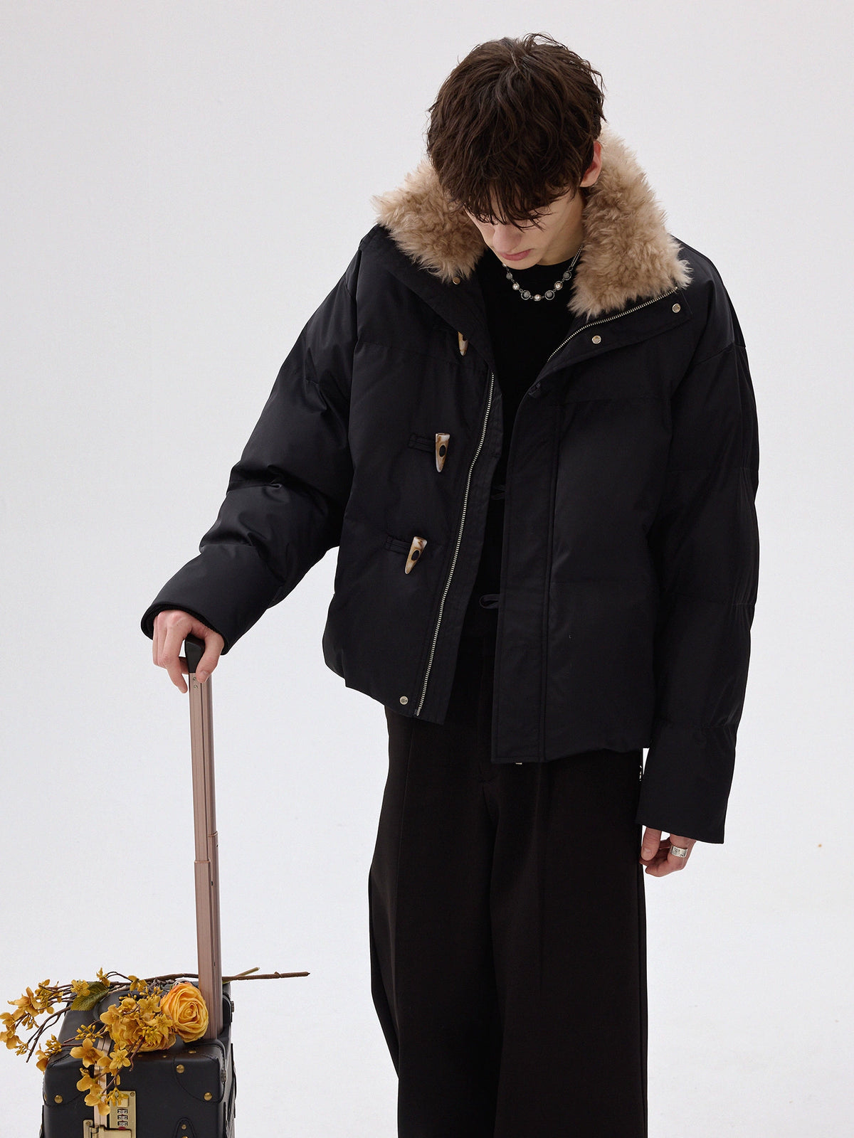Jaqueta Isolada com Gola de Pelo e Botão de Chifre