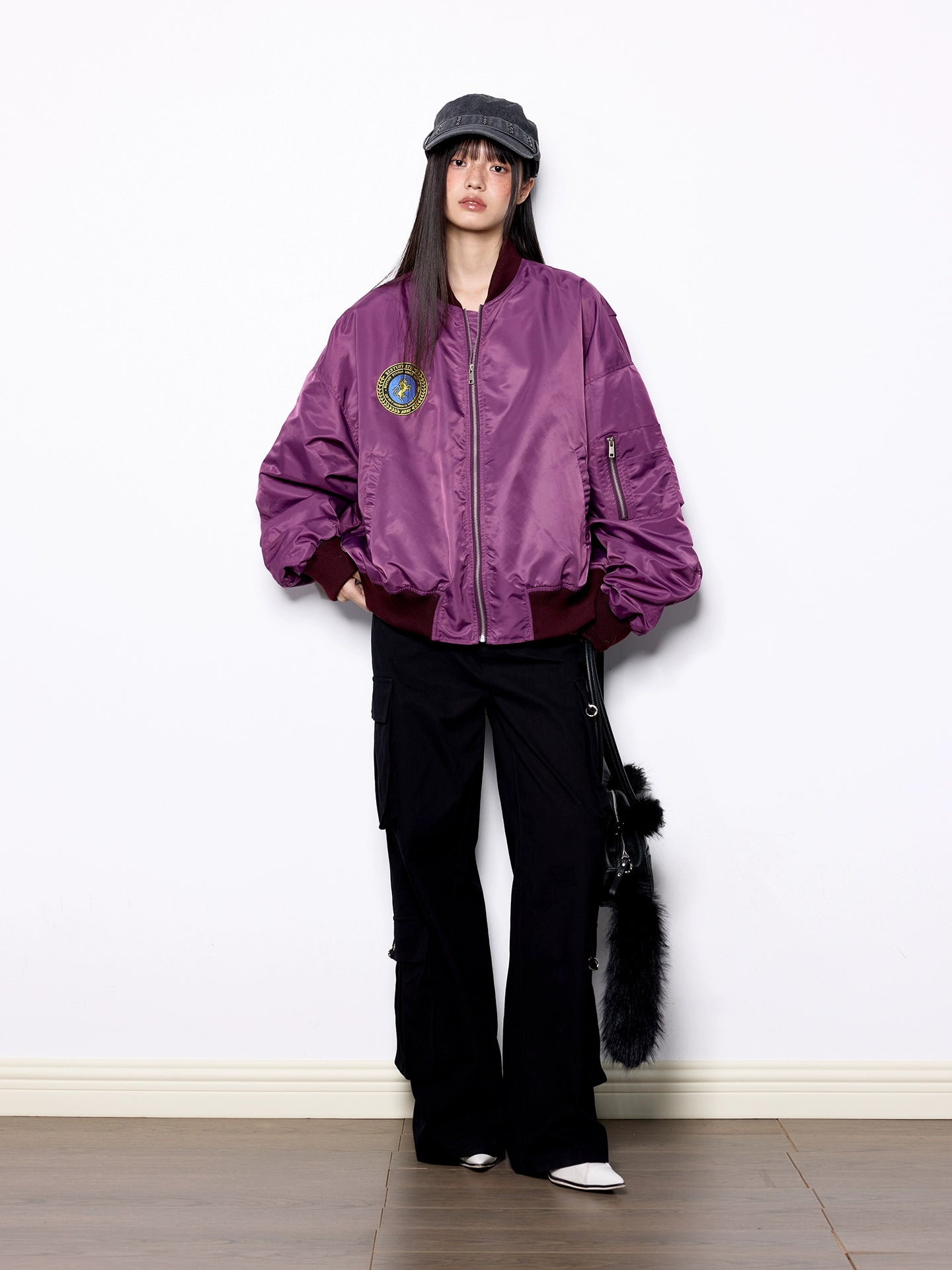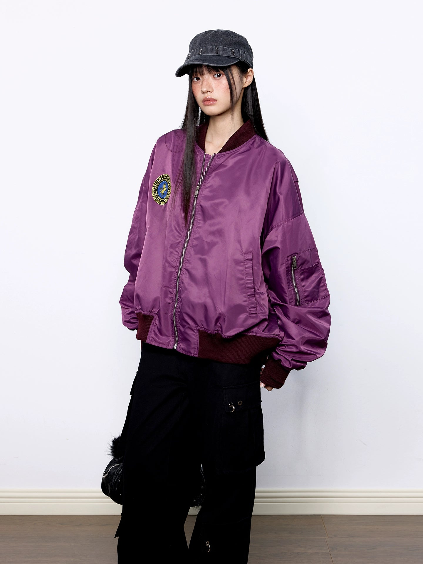 Jaqueta Bomber de Vôo com Zíper e Gola Alta