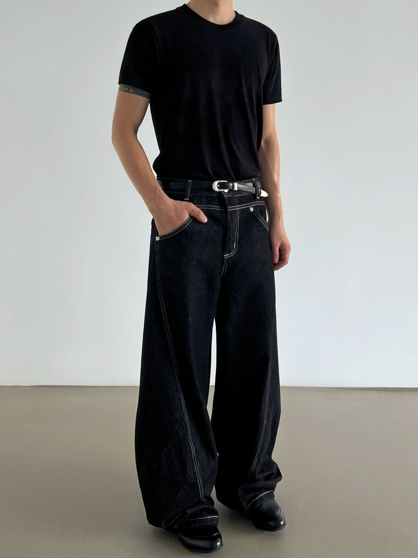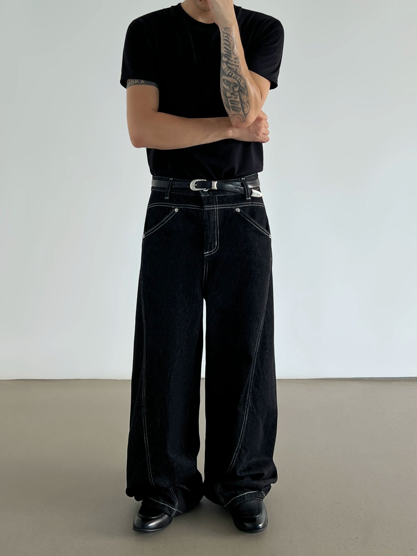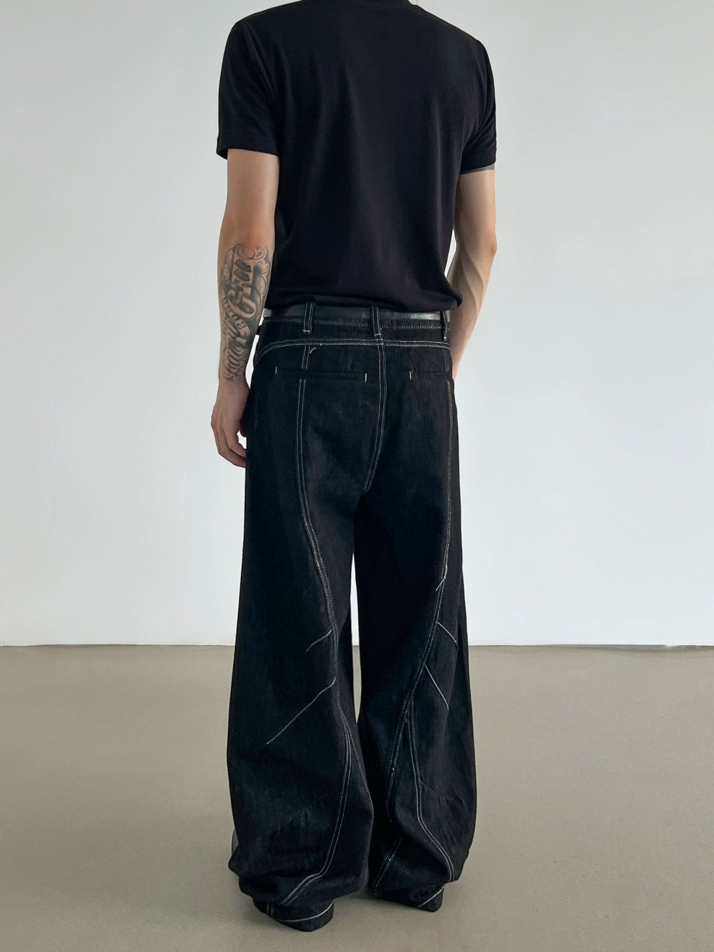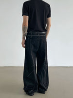 Calças de Denim Baggy de Perna Larga Deconstruídas