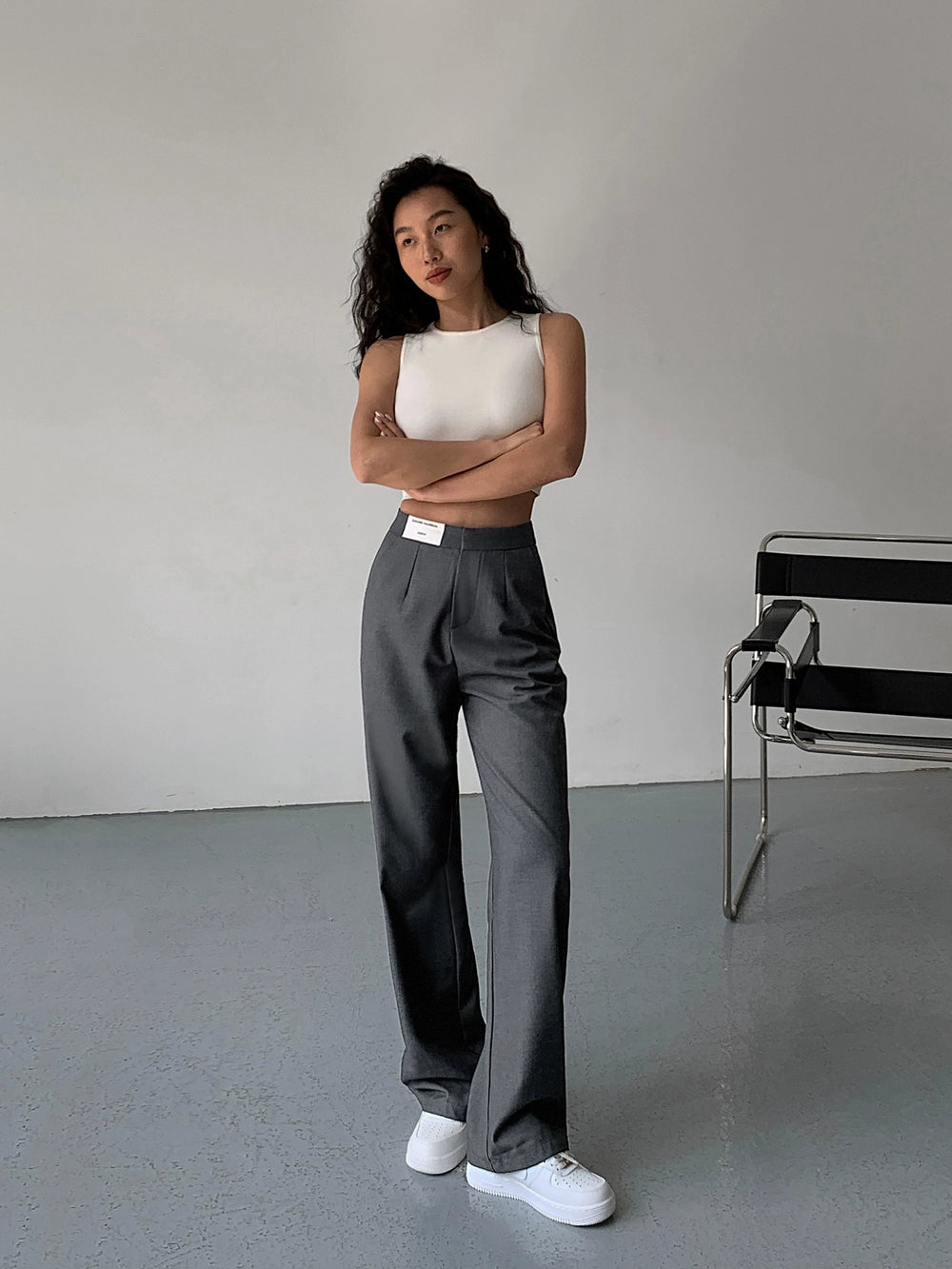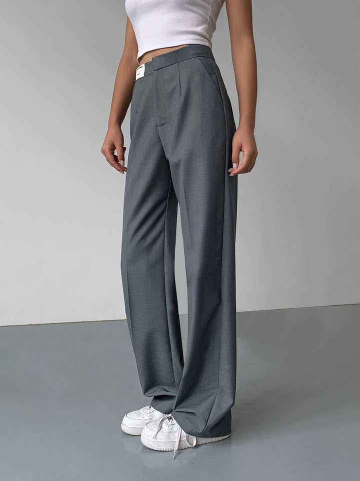 - Design de etiqueta em cor contrastante na cintura para adicionar detalhe visual e um efeito afinador