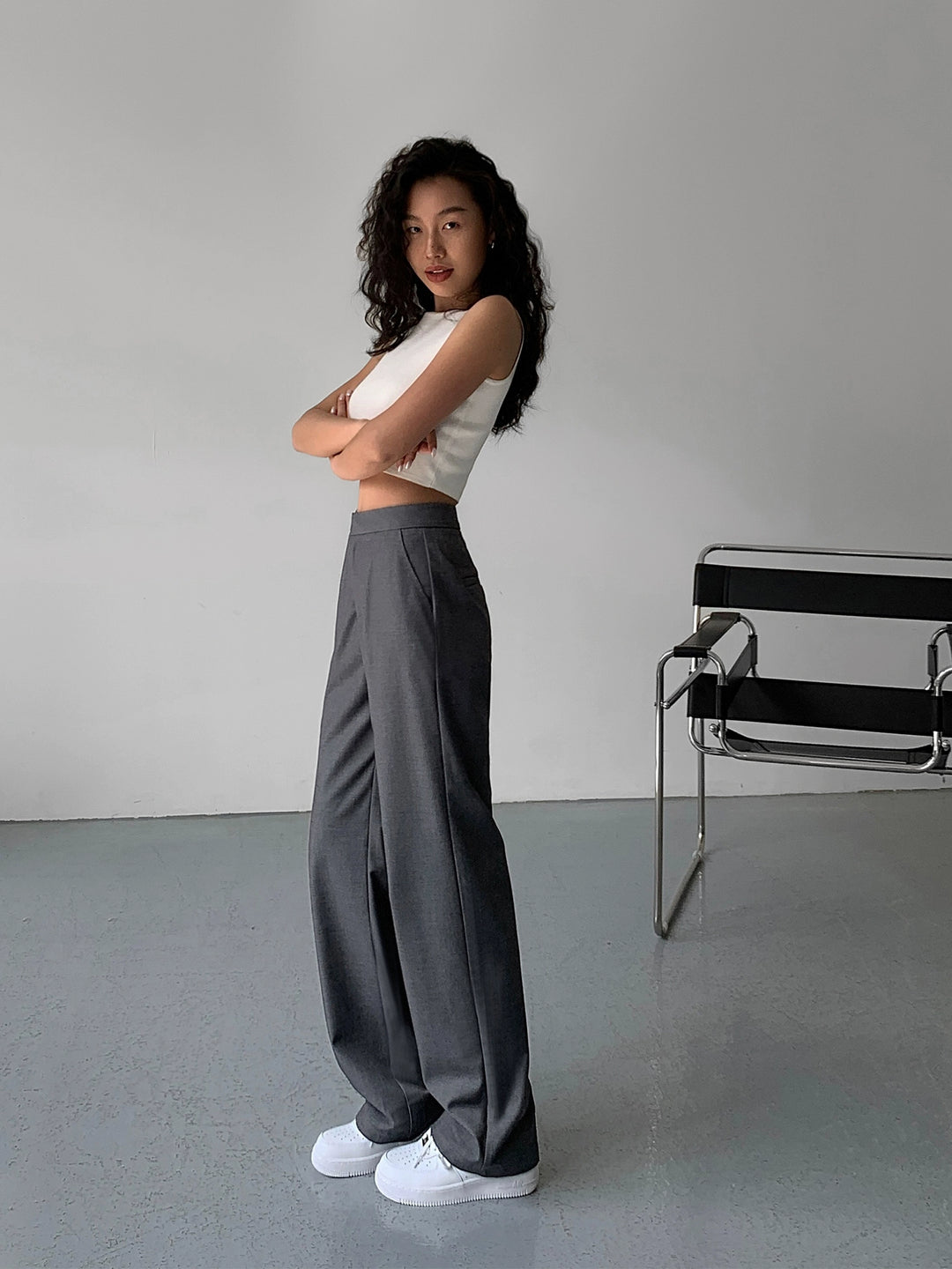 - Design clássico de botão e zíper, a versão cinza apresenta bolsos inclinados nas laterais para praticidade e estética