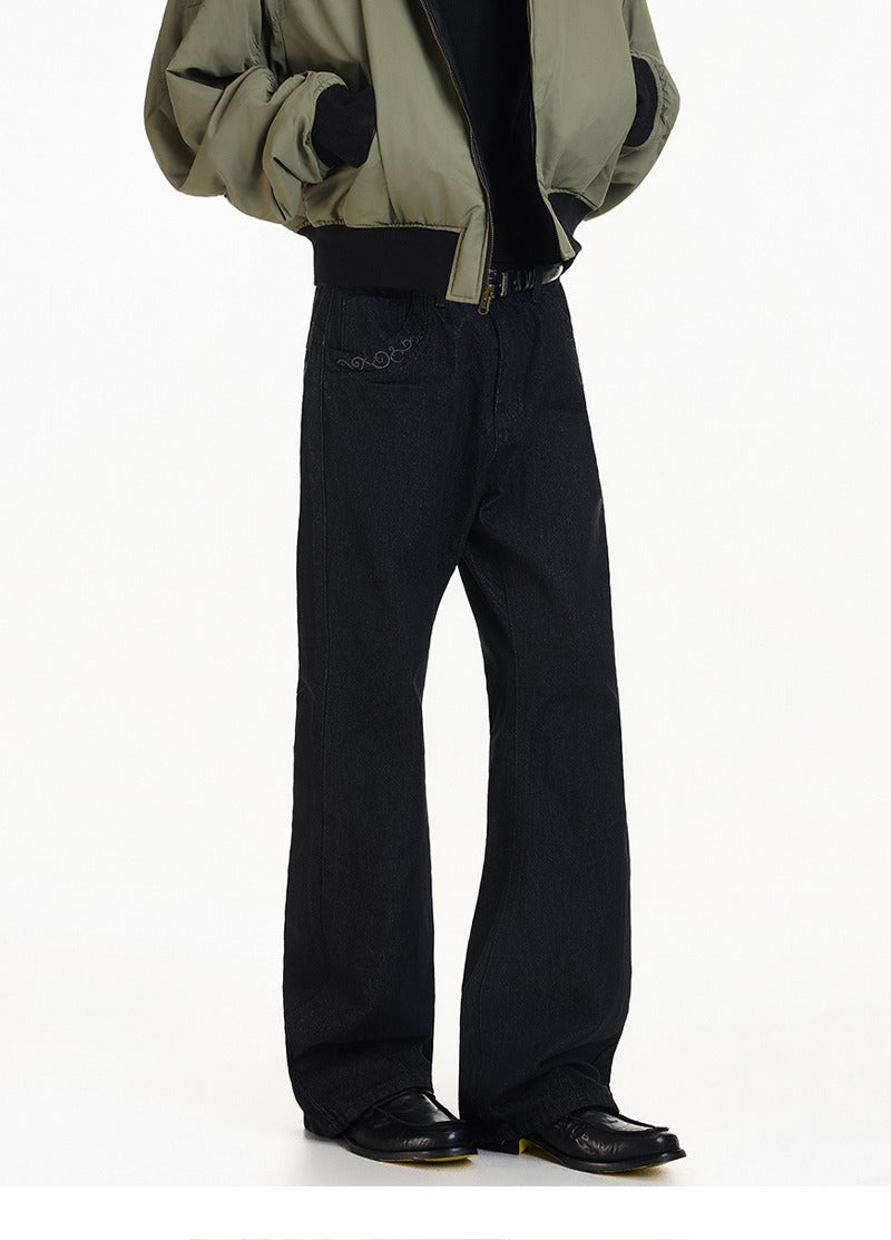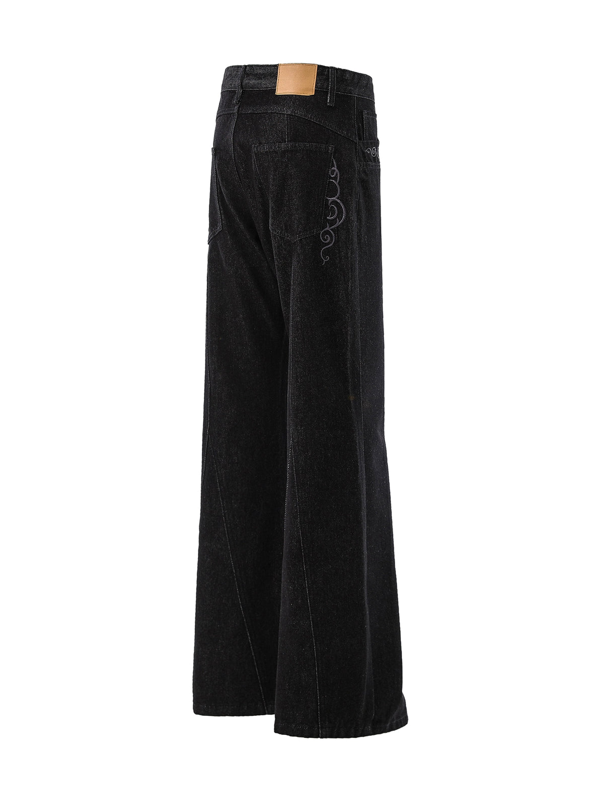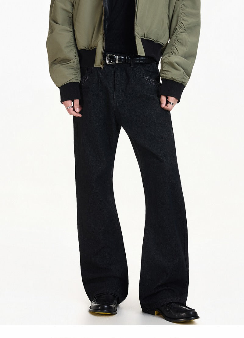 Calças Flare de Denim Cru Bordadas Texturizadas