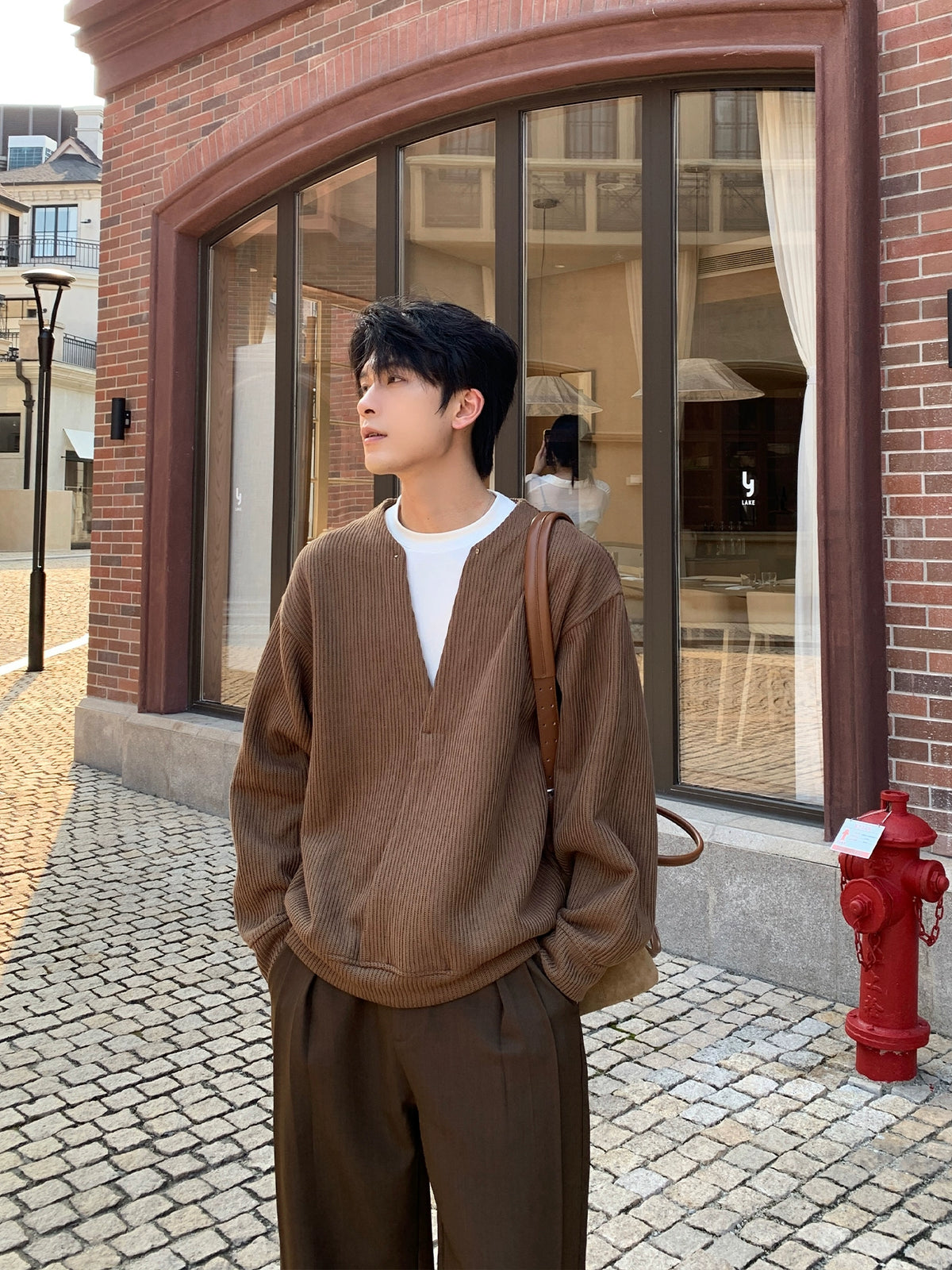 Conjunto de Suéter de Malha com Decote em V