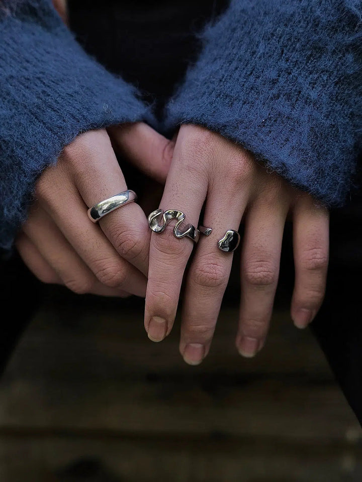 Titanium Liquid Design Couple Ring