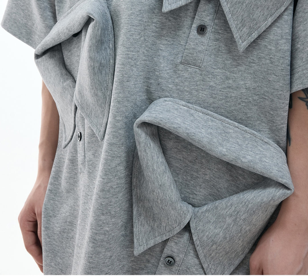 - Os botões na gola são feitos de resina, coordenados por cor com a peça, servindo tanto para fechamento quanto para funções decorativas, e são fáceis de abrir e fechar.