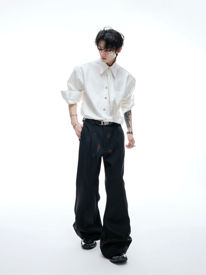 Camisa Larga com Ombros Almofadados e Detalhes em Tecido