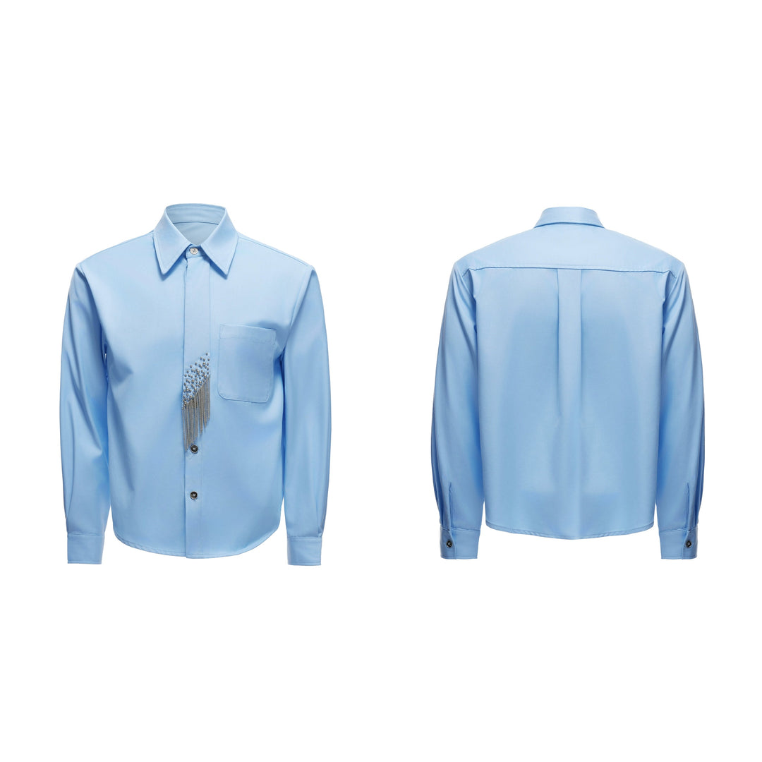 • Botões: Botões de concha natural com um brilho suave, harmonizando com o tom de cor do tecido.
