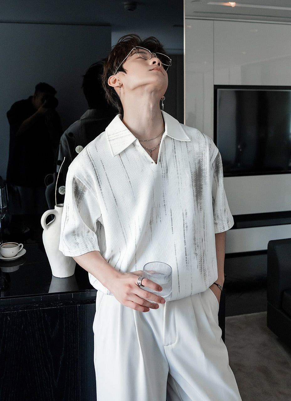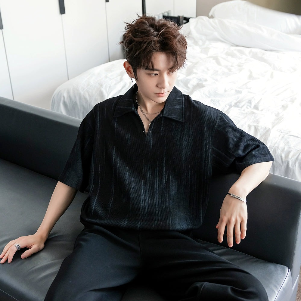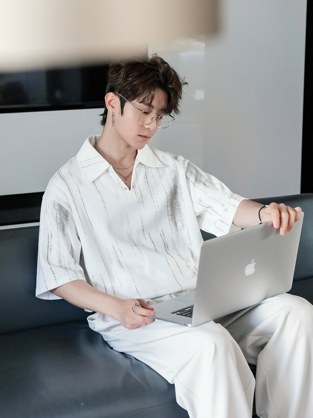 • Tecido de malha canelada tingida 260G, estruturado, com uma sensação delicada, mostrando efeito de textura tingida