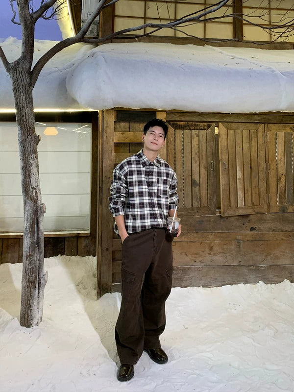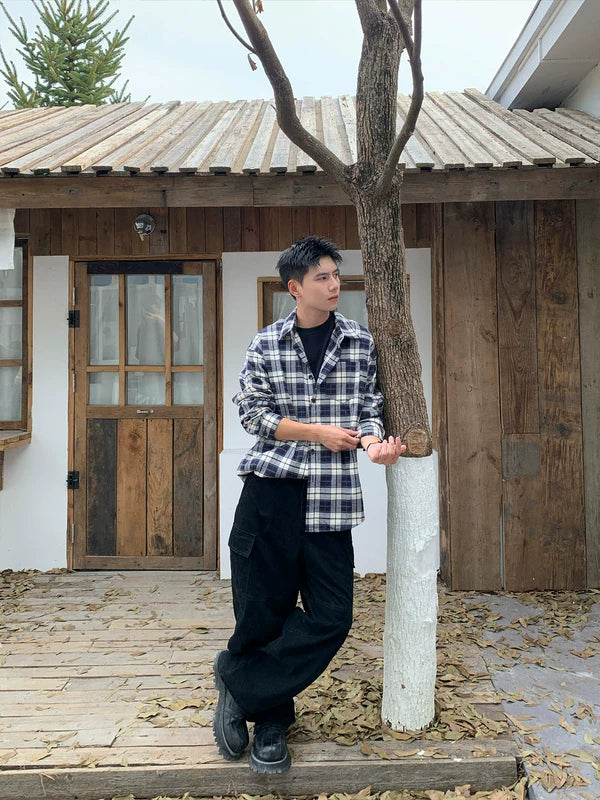 Camisa Jaqueta de Botão de Manga Longa Xadrez