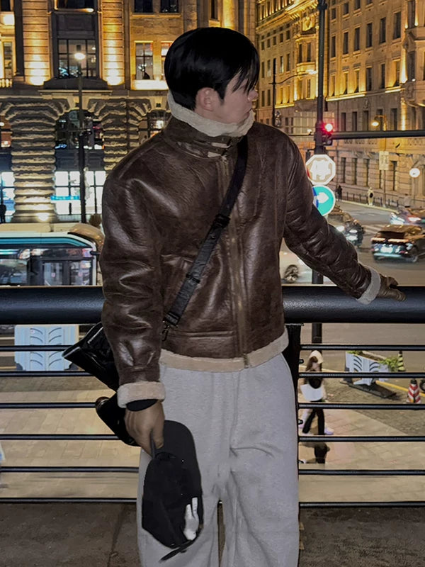 Зимняя куртка с воротником из шерпы из искусственной кожи