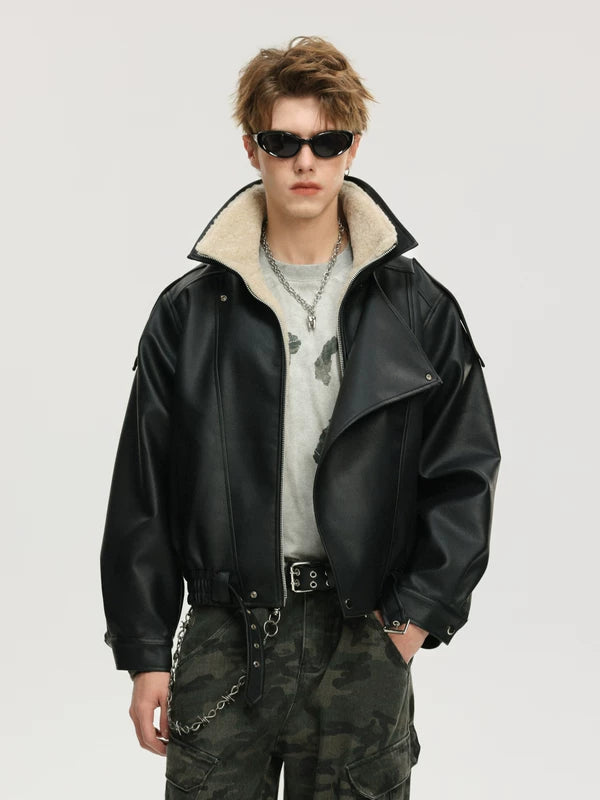 Кожаная мотоциклетная куртка с подкладкой из шерпы