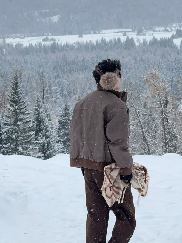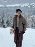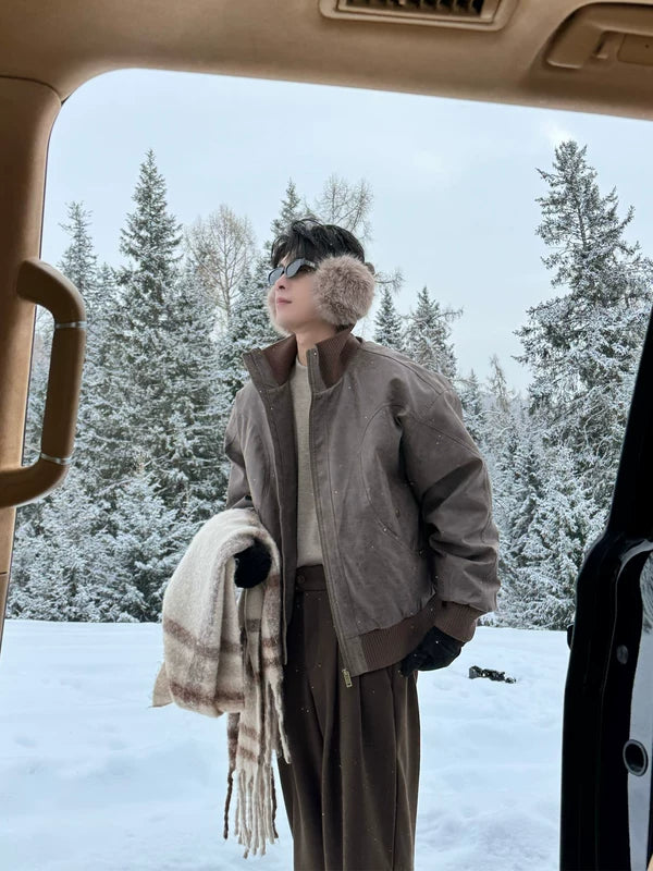Зимняя кожаная куртка с воротником-стойкой