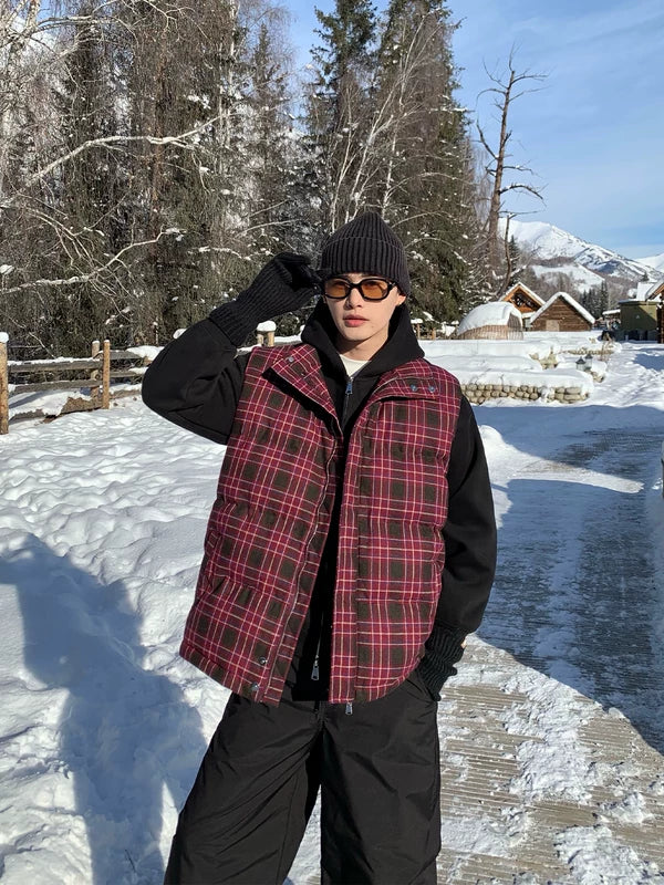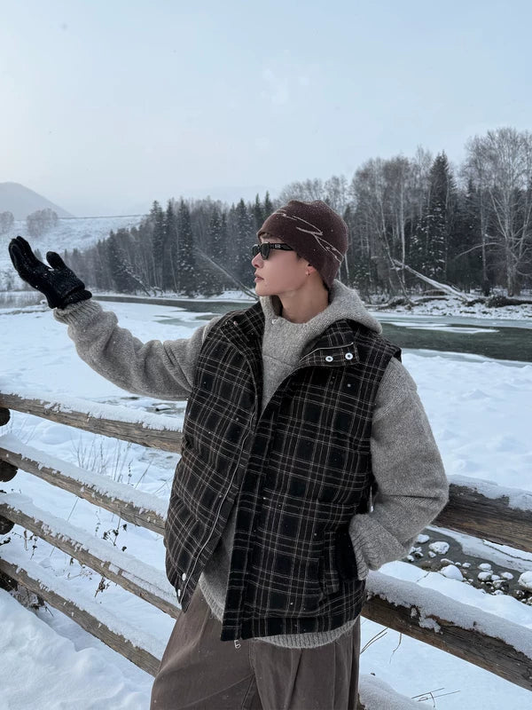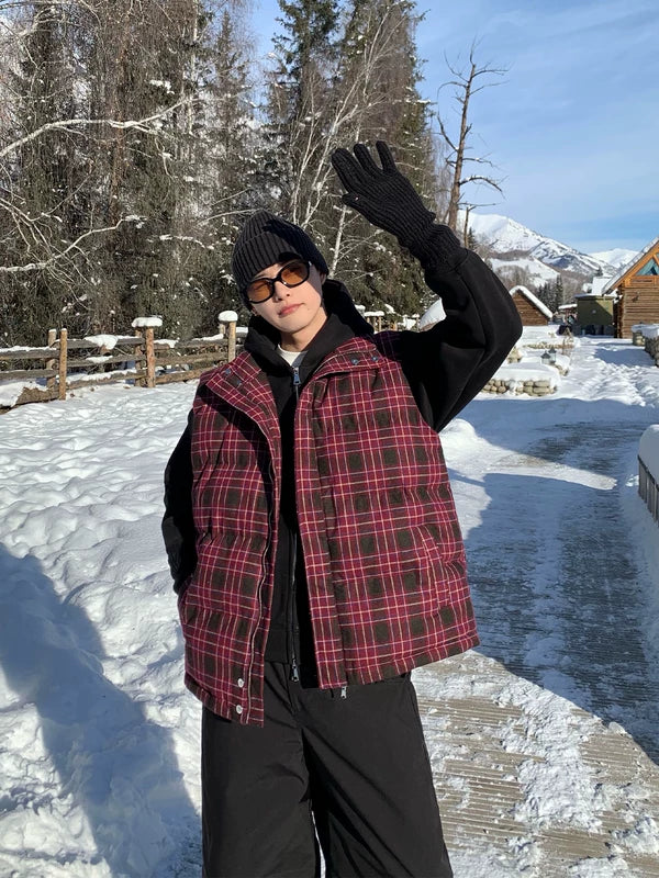Пуховик в клетку с капюшоном